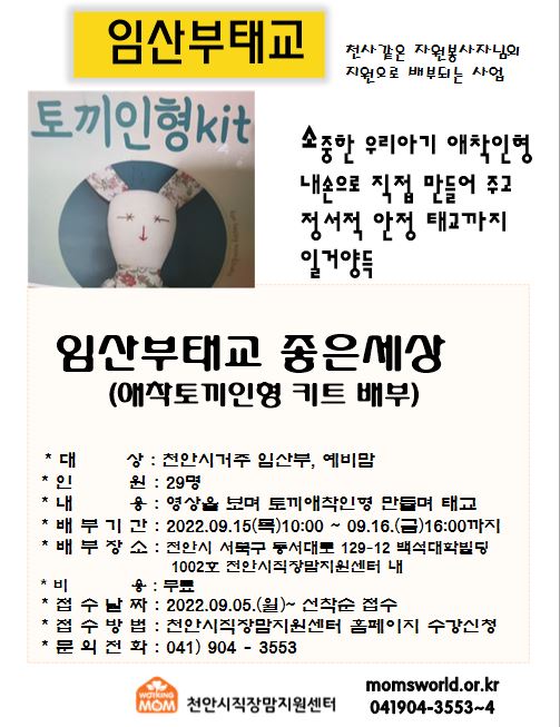 천안시자원봉사센터에서 지원하여 천안시에 거주 하시는 임산부님께