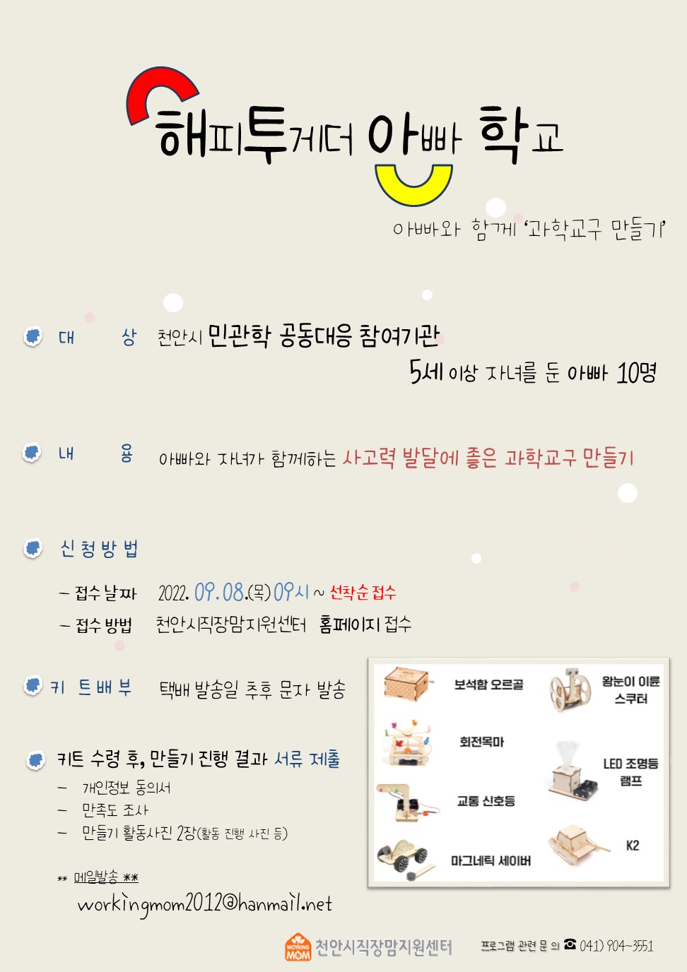 9월 프로그램으로 '아빠와 함께 과학교구 만들기'를 진행합니다.