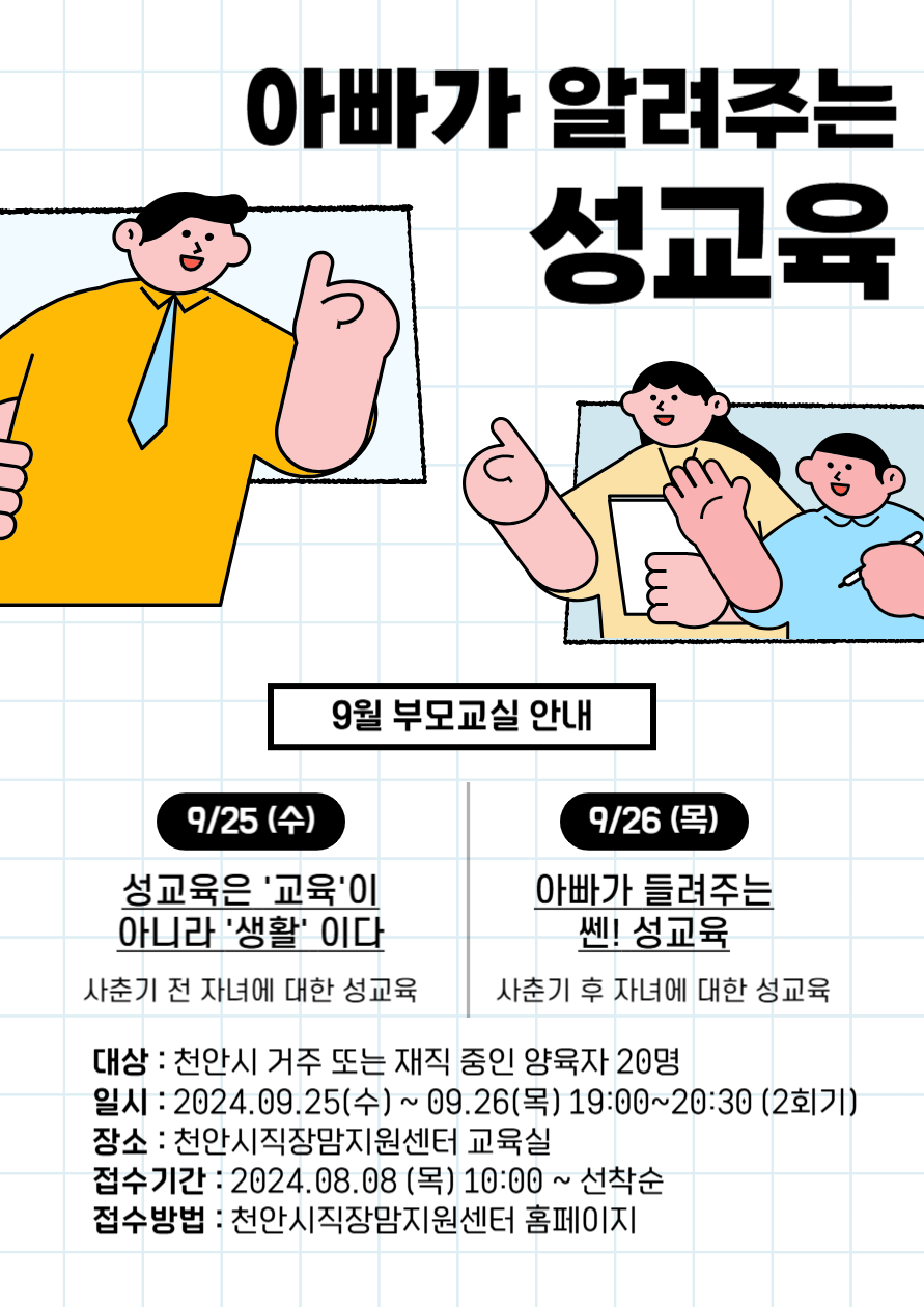 9월 부모교실 주제는 "아빠가 알려주는 성교육"입니다.