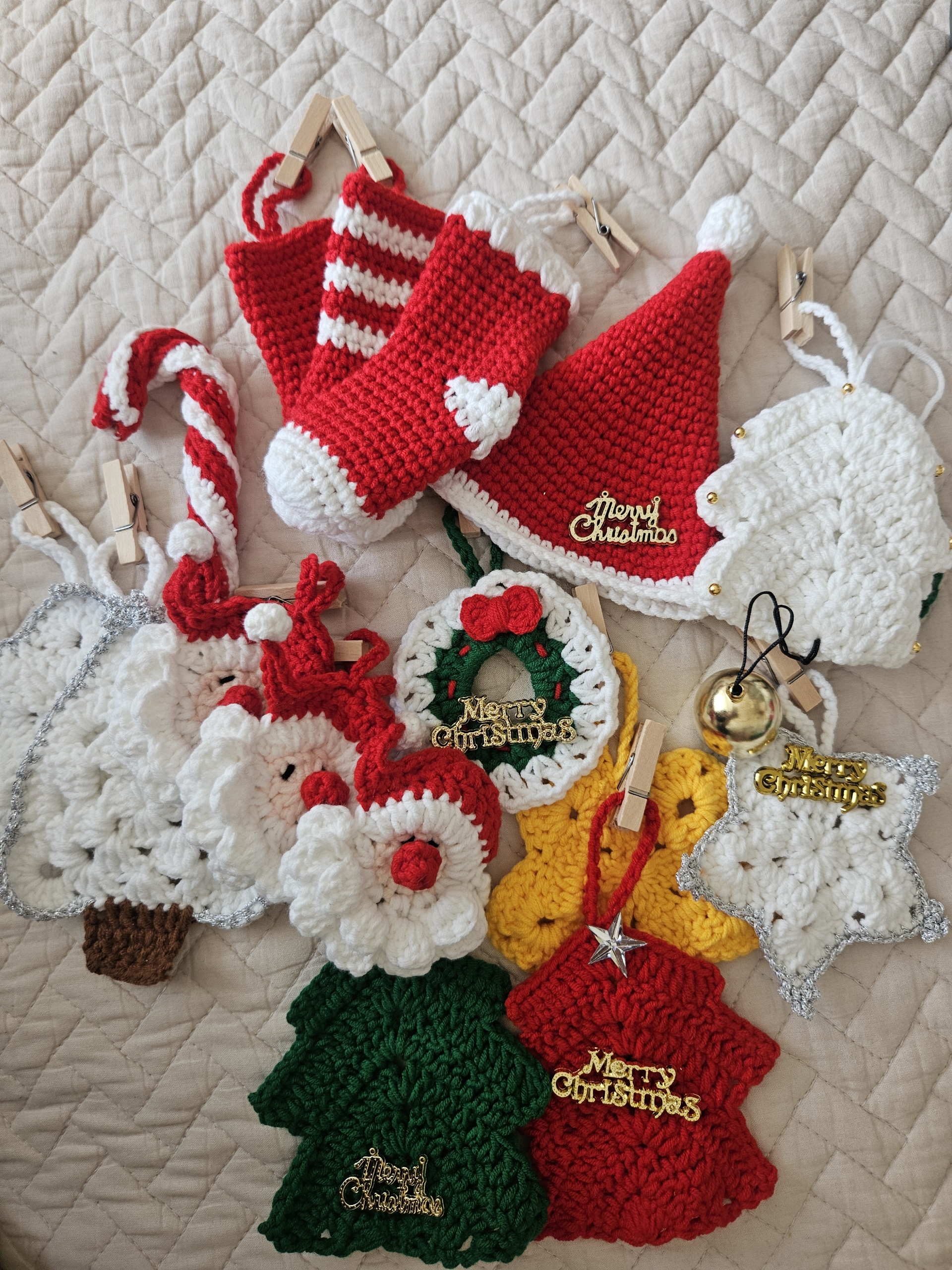 - 귀도리, 크리스마스 트리 장식품, 키링 코바늘 손뜨개