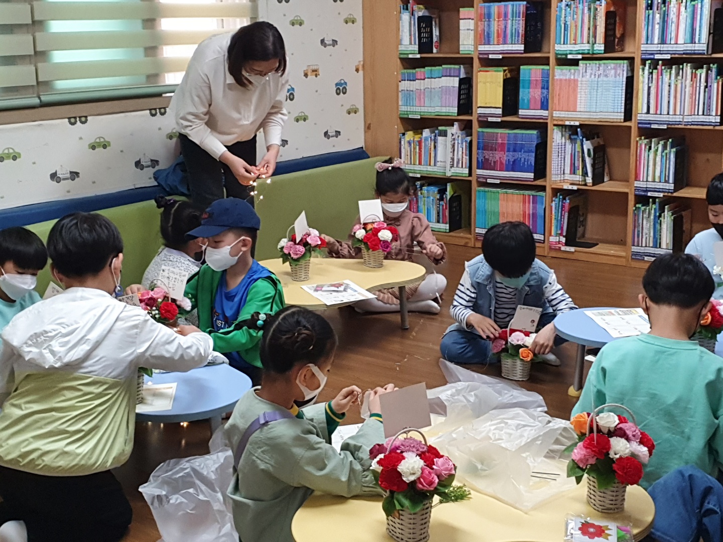 "도서관 다녀오겠습니다!" 프로그램 '카네이션 비누 꽃바구니 만들기'