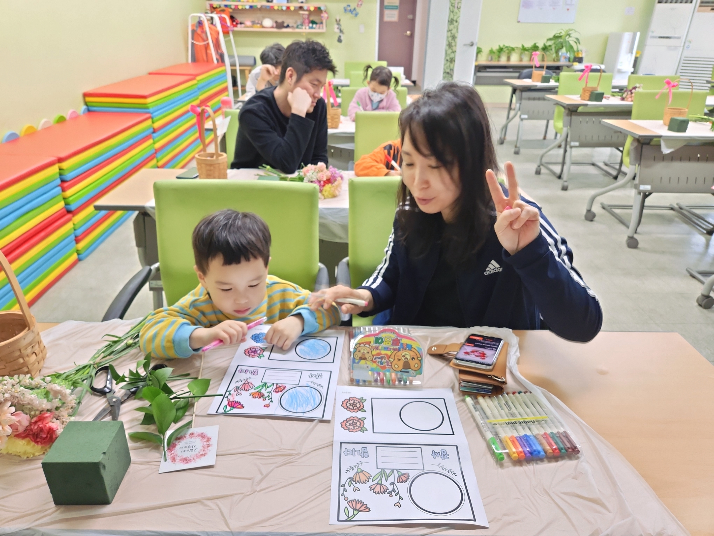 미취학자녀와 아빠가 함께 가정의 달을 알아보고 꽃바구니만들기