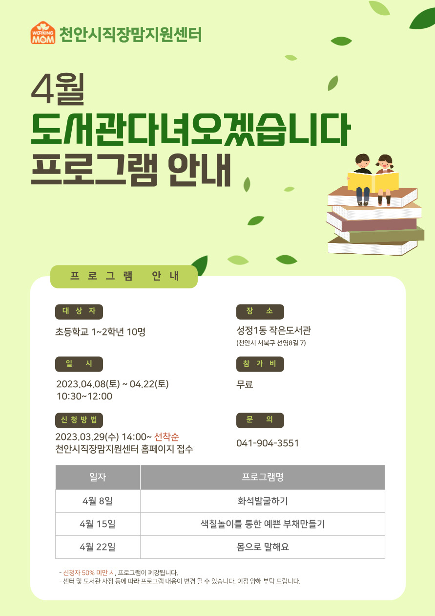 4월 도서관다녀오겠습니다 프로그램