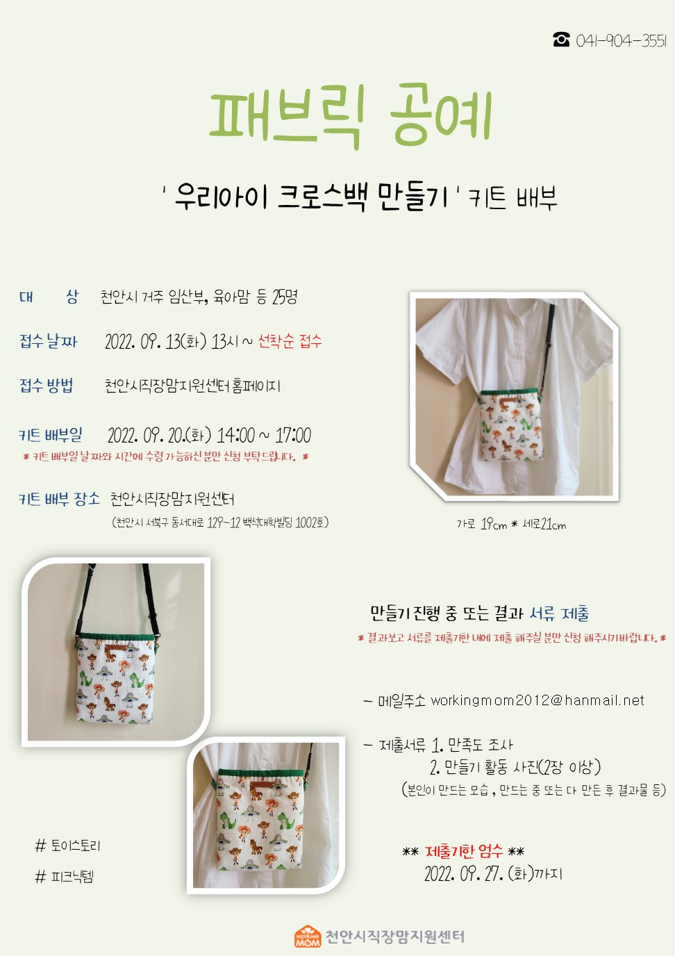 9월 패브릭공예 [우리 아이 크로스백 만들기] 마감