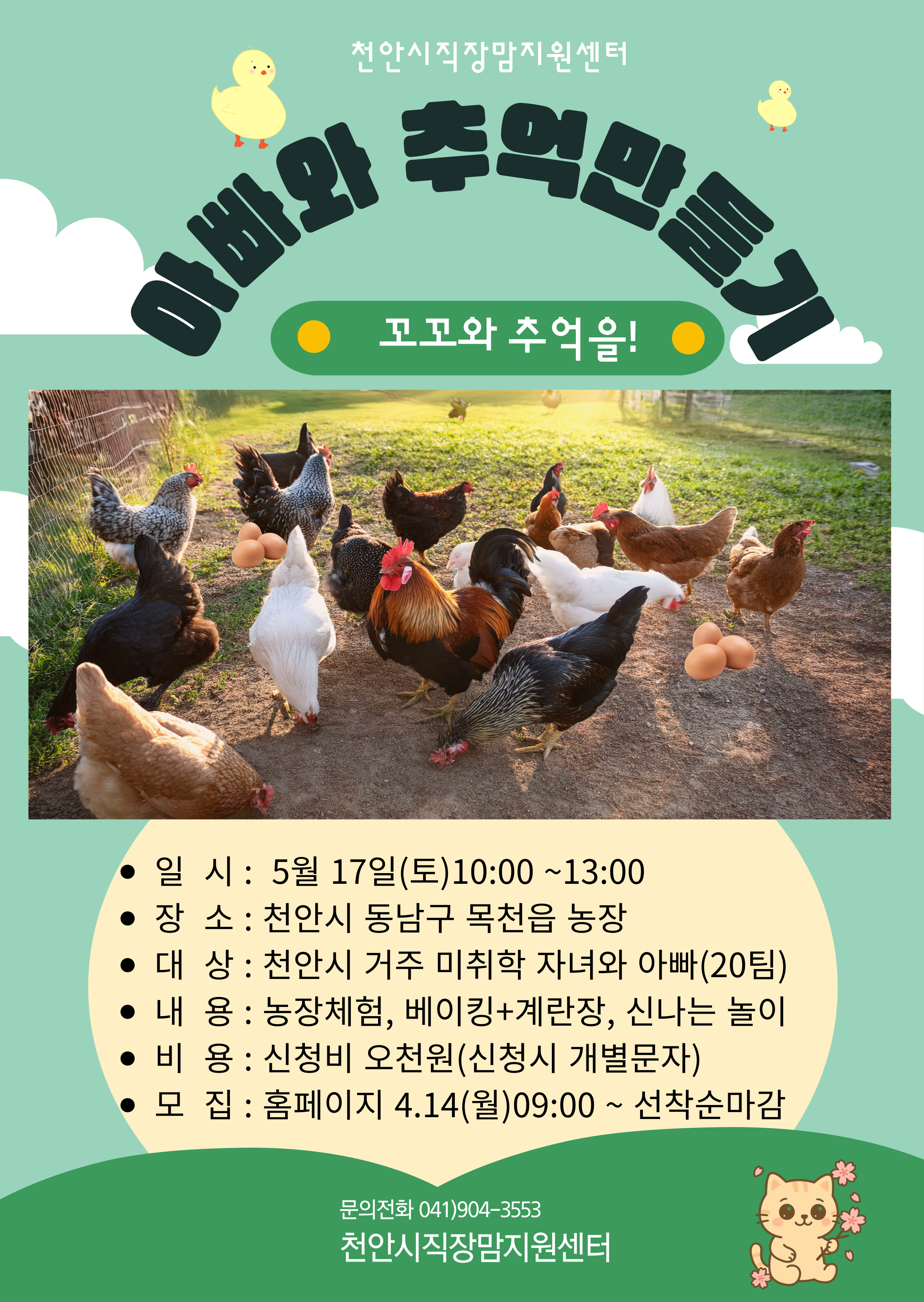 대상 천안시거주 미취학자녀(2022년생~2019년생 까지)와 아빠