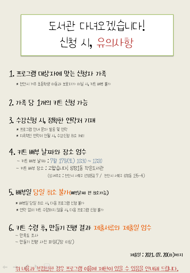 7월 도서관 다녀오겠습니다! _동물 모양 쿠키 만들기 키트 배부(7/8 9시 수강신청) 마감많은 관심 가져주셔서 감사합니다^^ 선착순 마감되었습니다.