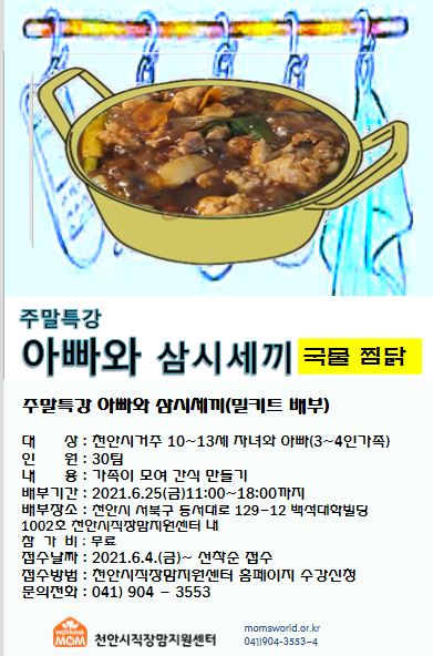 6월 주말특강 - 아빠와 삼시세끼 (국물찜닭 밀키트 배부)선착순 접수마감