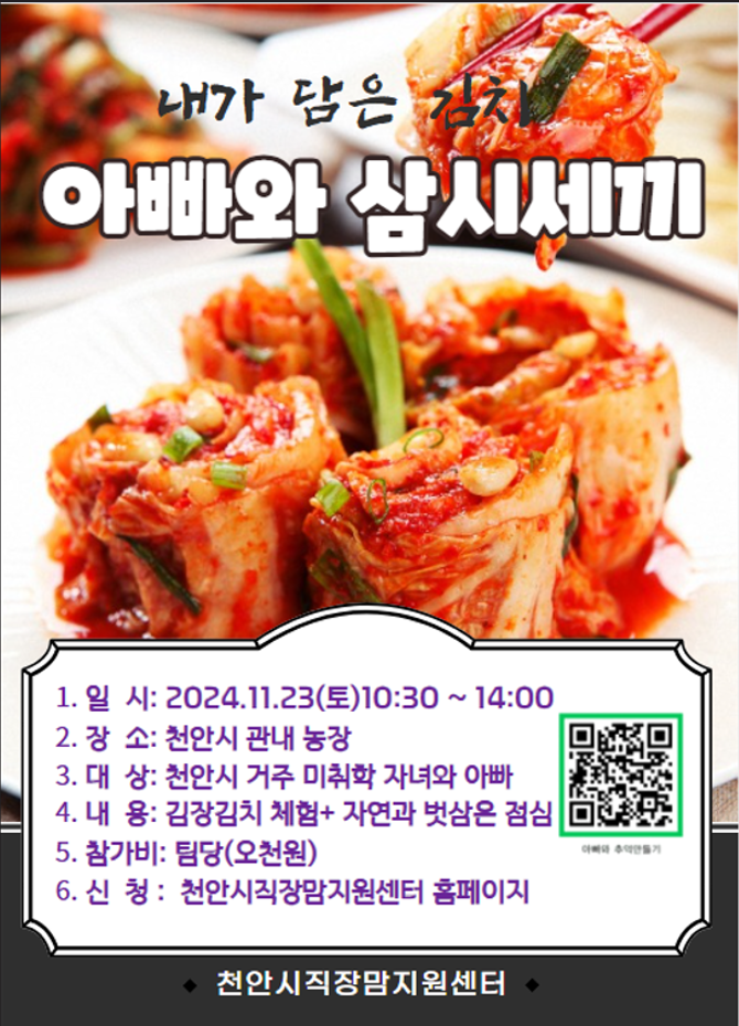 대 상: 천안시 관내 거주 미취학자녀1명과 아빠