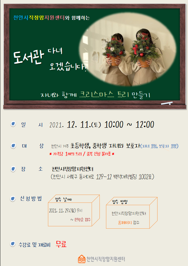 천안시직장맘지원센터에서는 12월 "도서관 다녀오겠습니다!" 프로그램으로