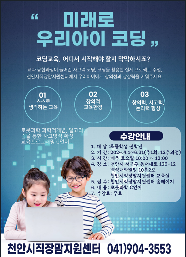 초등자녀들을 위한 로봇과학 코딩 프로그램을 운영합니다.