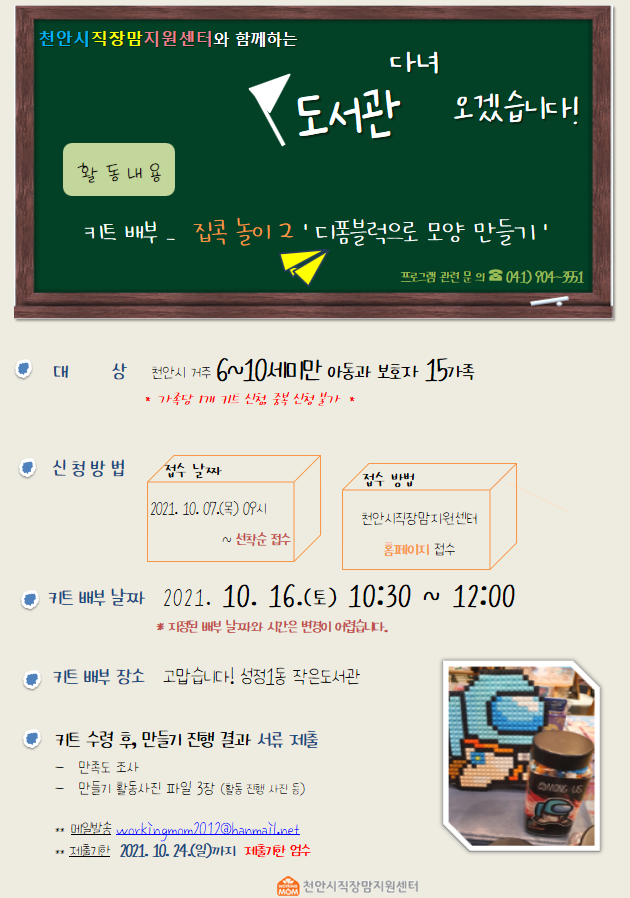 천안시직장맘지원센터에서는 10월 "도서관 다녀오겠습니다!" 프로그램