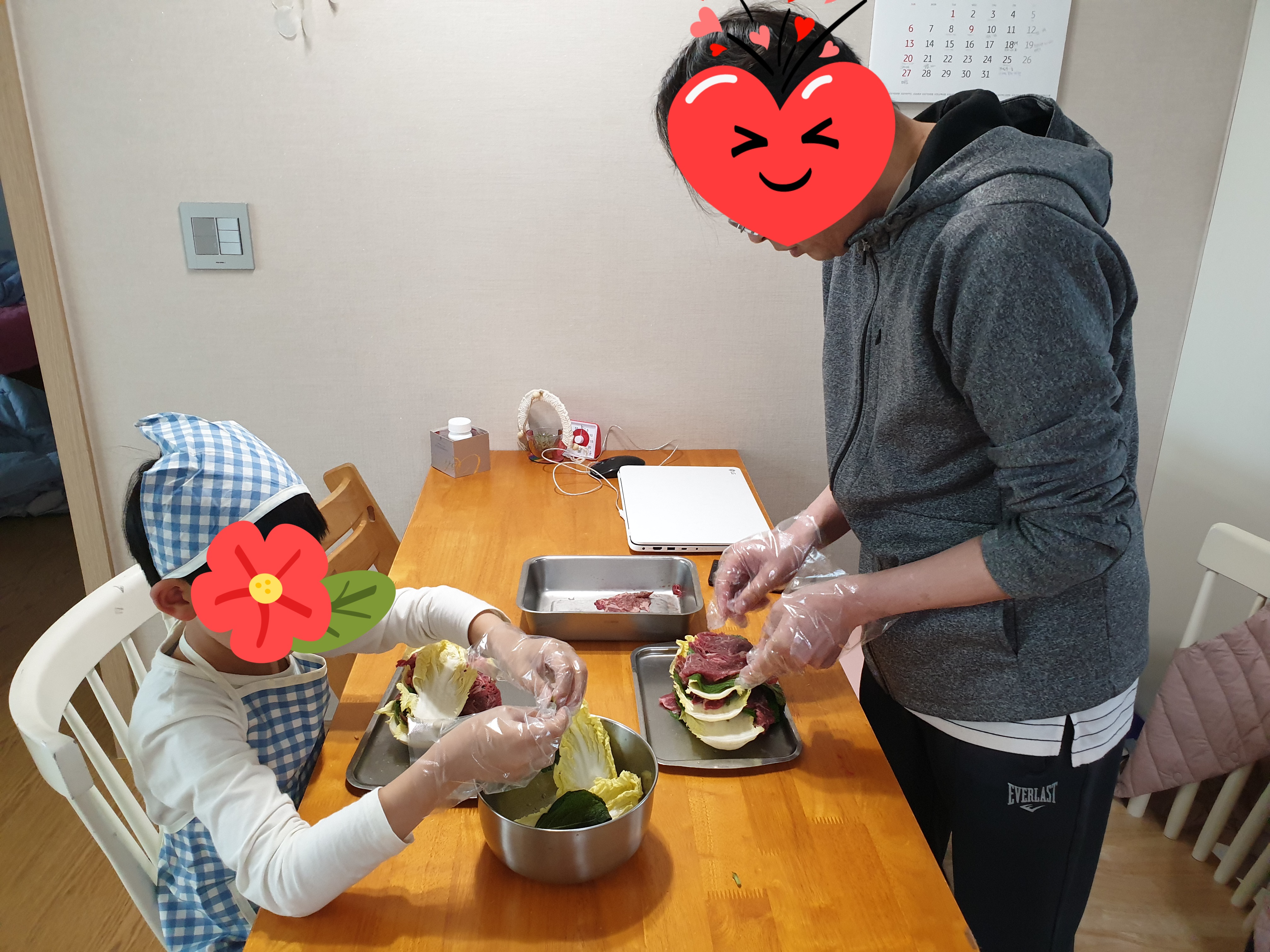 아빠와 자녀가 함께 밀푀유나베 만들기